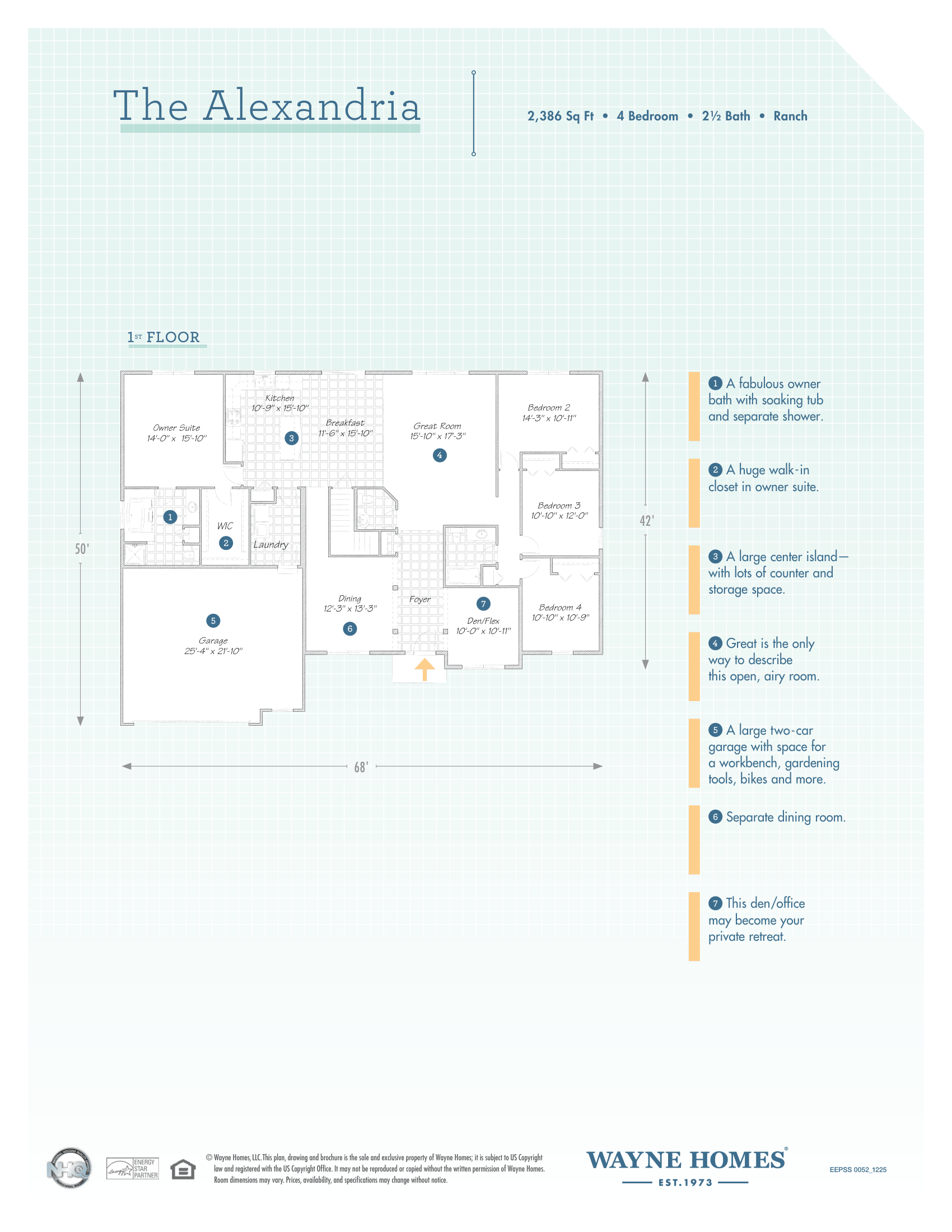 The Alexandria model with Legacy exterior is packed with great features, including a gourmet kitchen, a floor-to-ceiling stacked stone fireplace with a barn beam mantel in the great room, and a spa-like owner suite shower.